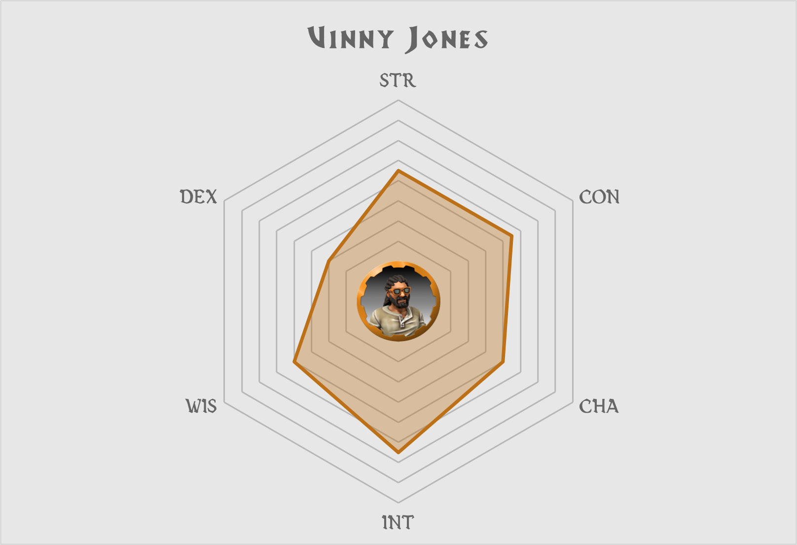 Em casa, Vinny é um mago dos dados, usando sua habilidade para solucionar problemas complexos com uma eficiência que muitos invejam. Mas após o expediente, ele se transforma, dedicando-se a explorar reinos digitais e liderar aventuras em mesas de RPG com amigos. Cada sessão é uma chance de aplicar sua lógica afiada em batalhas contra dragões e intrigas cortesãs, navegando por mundos onde a magia é tão real quanto os números que ele manipula durante o dia.