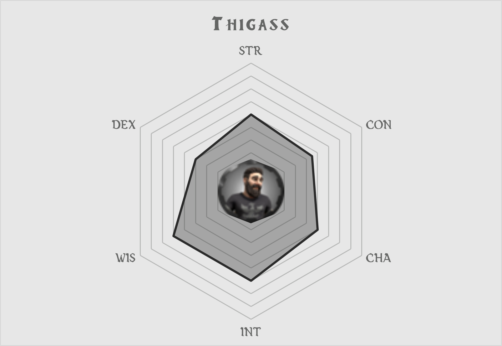 Com sua inseparável Heineken, que dizem conter a essência da bravura gaúcha, Thigass luta contra as forças do caos que tentam desestabilizar o universo financeiro. Em noites de lua cheia, é possível vê-lo nos telhados altos da Vila Madalena, um silhueta contra o céu estrelado, enquanto ele prepara suas melodias salvadoras e seus personagens mirabolantes. Ele não só planeja conquistar o mundo dos negócios, mas também Neverwinter, e muitos outros.