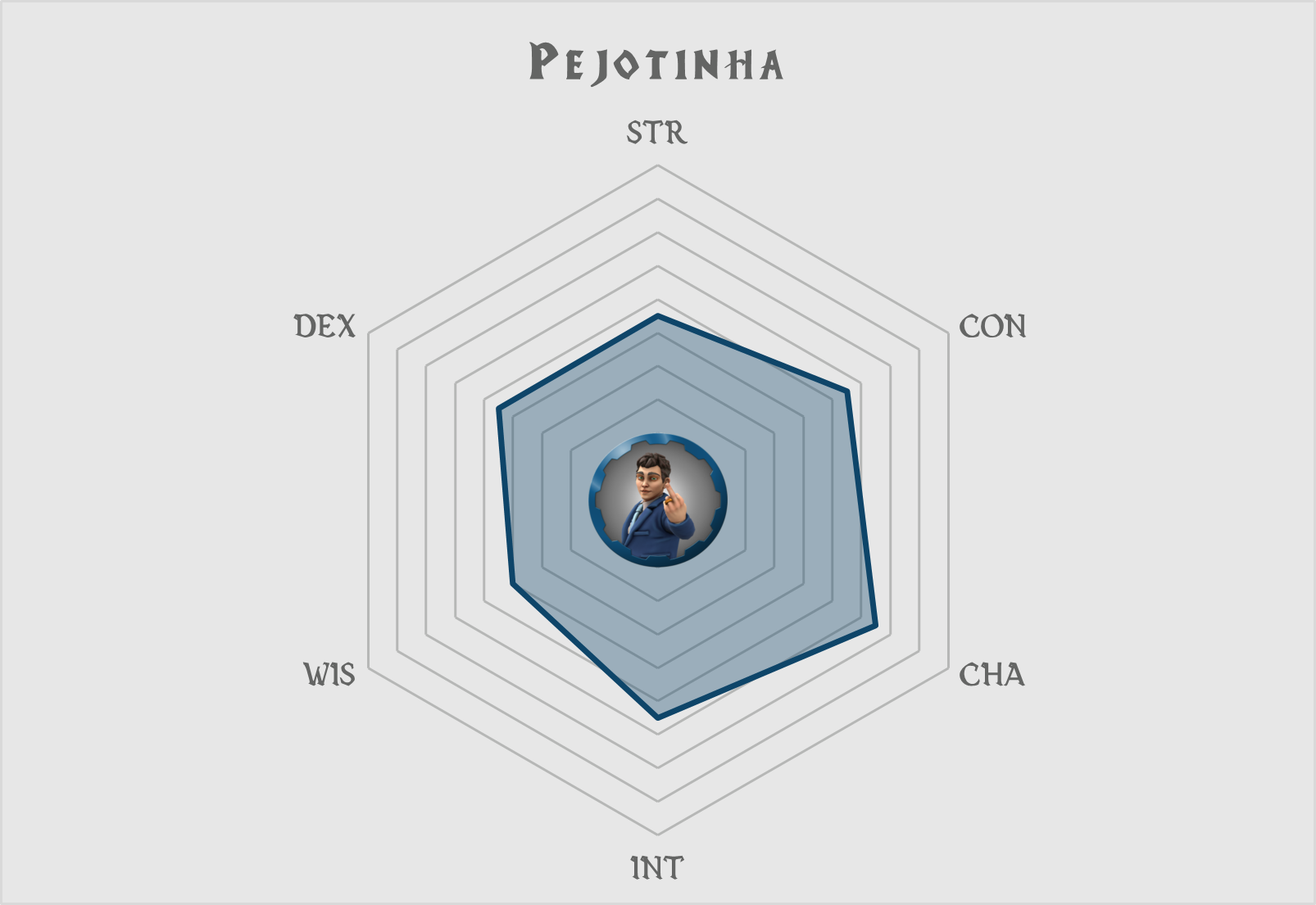 Entre audiências e vitórias, Pejotinha é uma figura carismática que cativa tanto colegas quanto adversários com seu sorriso enigmático e argumentos inescapáveis. E mesmo que raramente se veja suado, cada movimento seu é calculado para garantir que sua lenda de invencibilidade continue a crescer nas cortes e além.