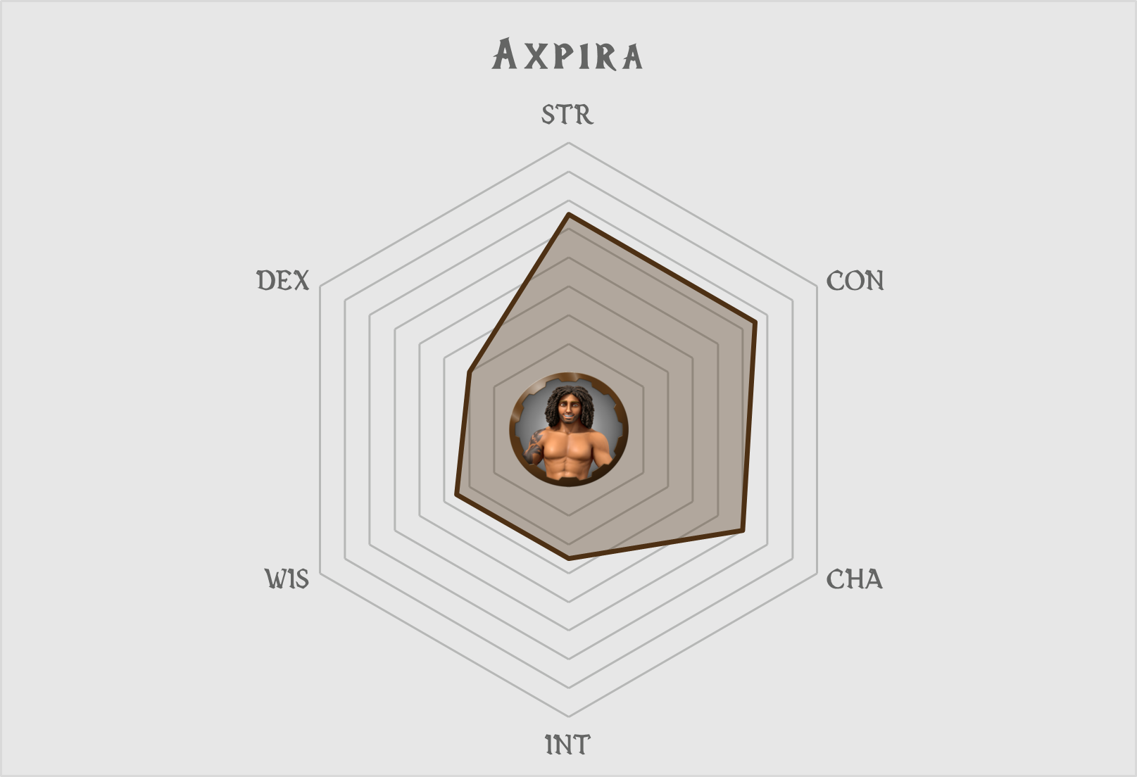 Apesar dos poderes que possui, Axpira escolhe viver como um mortal, desfrutando das simplicidades e desafios do dia a dia. Ele acredita que a verdadeira força vem de saber quando e como usar seus dons divinos. Contudo, quando o chamado para o heroísmo ecoa, seja por uma emergência no mar ou uma necessidade urgente na terra, ele não hesita em agir. Axpira é famoso por criar dietas que nutrem tanto o corpo quanto a alma, utilizando os segredos dos oceanos para promover saúde e bem-estar.