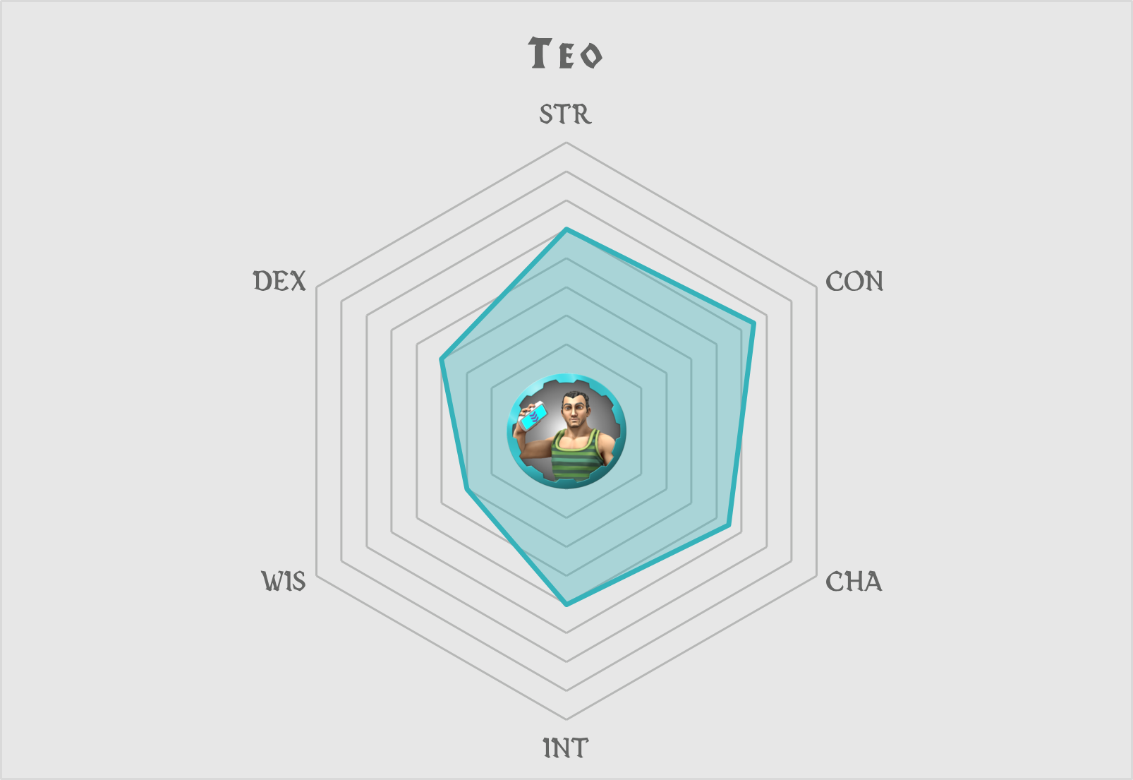 Apesar de suas frequentes viagens que o levam a terras distantes e exóticas, Teo é uma figura lendária nas sessões de RPG, exatamente porque muitas vezes (quase todas) sua cadeira esteja vazia. Seus companheiros de jogo sentem sua falta, mas sabem que cada jornada que ele faz é material para as crônicas épicas que ele trará na volta.