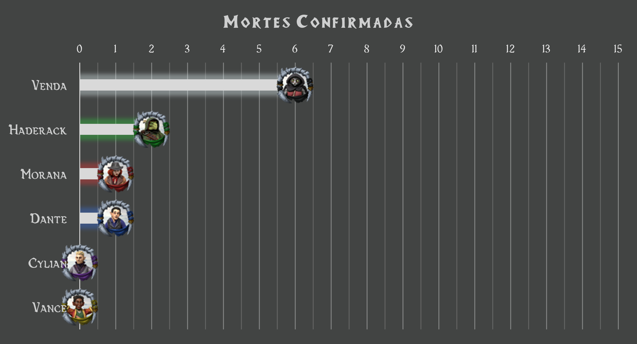 Mas Haderack também contruibu com duas mortes, e assim temos um novo gráfico atualizado: