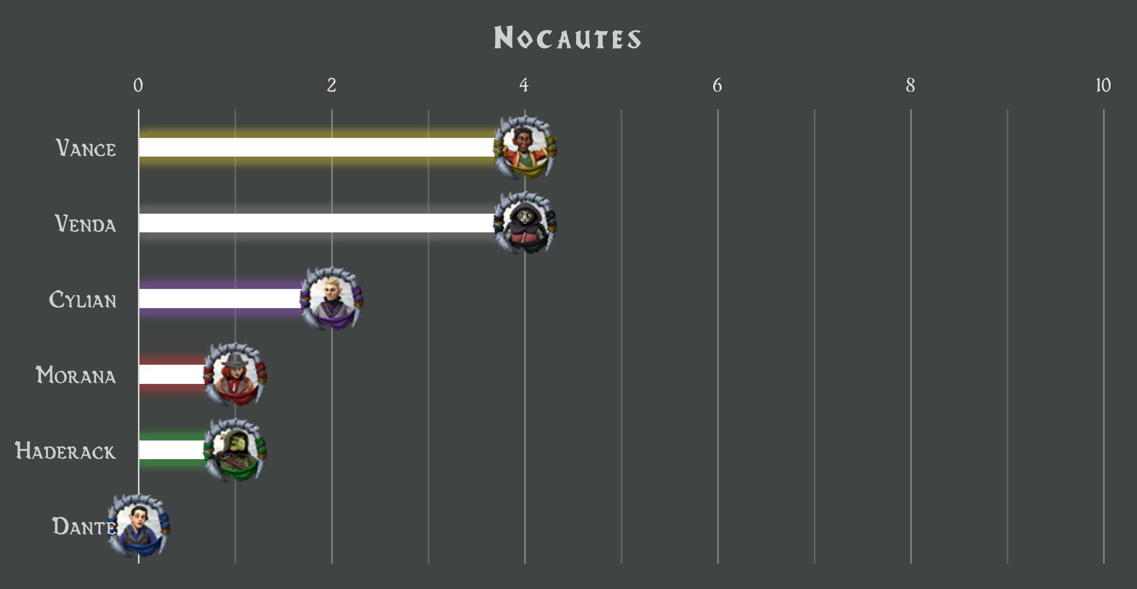 O draconato Haderack levou o Kill of the Week ao atirar uma flecha no goblin alquimista, explodir o molotov em sua mão, juntamente com todo o arsenal de bombas dele, matando inclusive dois de seus companheiros que estavam em volta.